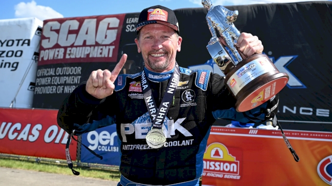 Funny Car’s Jack Beckman needed his own impressive performance on the starting line and he delivered, winning on a holeshot in the final round against John Force Racing teammate and reigning world champion Austin Prock with a run of 3.935 at 325.77 in his 12,000-horsepower PEAK Chevrolet SS.