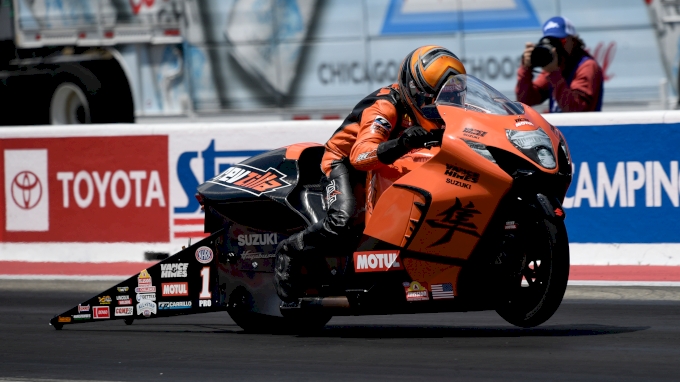 On Sunday, he knocked off John Hall and Chris Bostick to reach the finals before dispatching of Smith and leaving Chicago with the Pro Stock Motorcycle points lead.