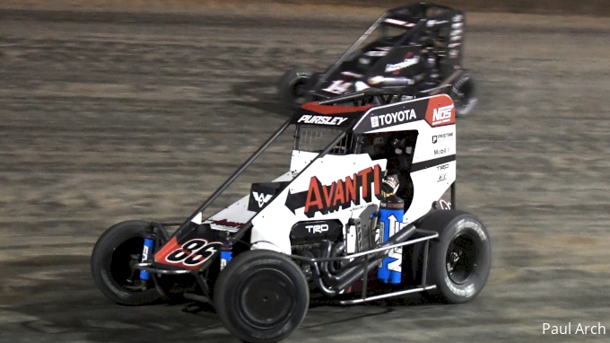 Daison Pursley followed his wingless Sprint Car victory by winning the 25-lap Midget main event from seventh.