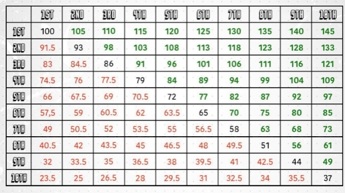 The easiest description of the passing points chart (included below) can be broken down by finishing points AND THEN passing points. By position, drivers earn 100 for 1st - 93 for 2nd - 86 for 3rd - it’s a 7-point drop per spot. Then, you add in passing points, which is +5 for every position advanced and -1.5 for every position lost.