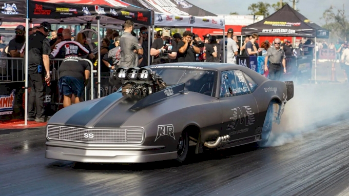 Jackson qualified sixth in the quickest field in Pro Mod history, with all 32 cars running in the 3.50s. Jackson ran a 3.564 at 211.53 mph, the quickest screw-blown car in the field. With the unique chip draw format, Jackson didn’t benefit from a high qualifying position. He drew 2024 No Prep Kings champion Shawn “Murder Nova” Ellington in the first round. Ellington suffered tire shake in “Blue,” his Keith Haney Racing twin-turbo ’69 Camaro, and had to let off early. Jackson cruised to a 3.562 at 211.69 mph.
